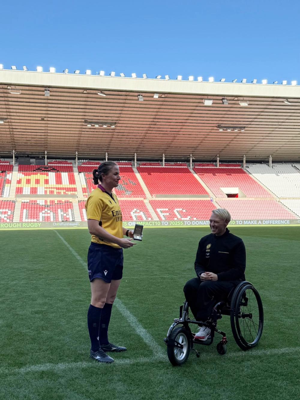 In August 2025, ChildFund Rugby Ambassador Lexi Chambers completed 10 ultramarathons in 10 days, covering over 322 miles in a non-sport wheelchair, and delivered the official match whistle for the Women's Rugby World Cup 2025 opening game.